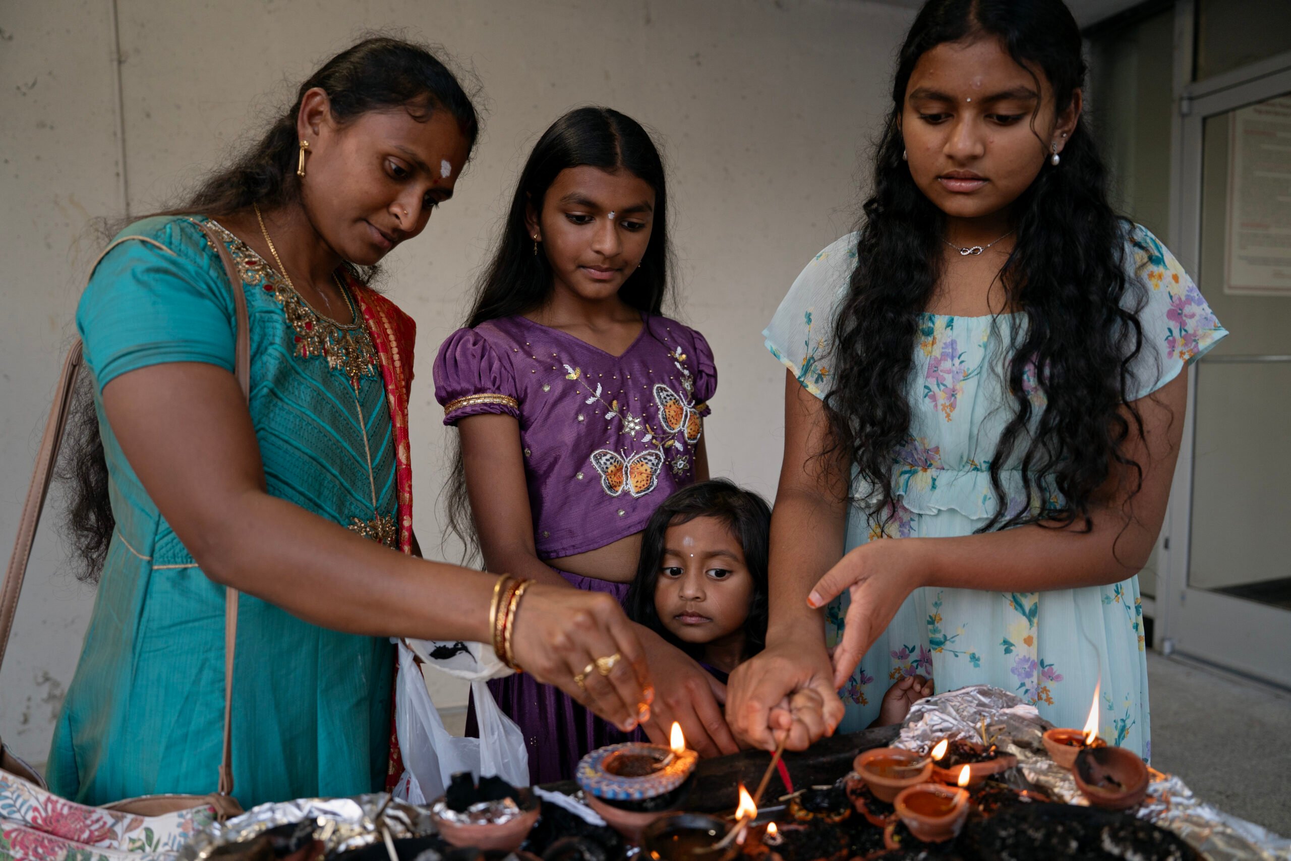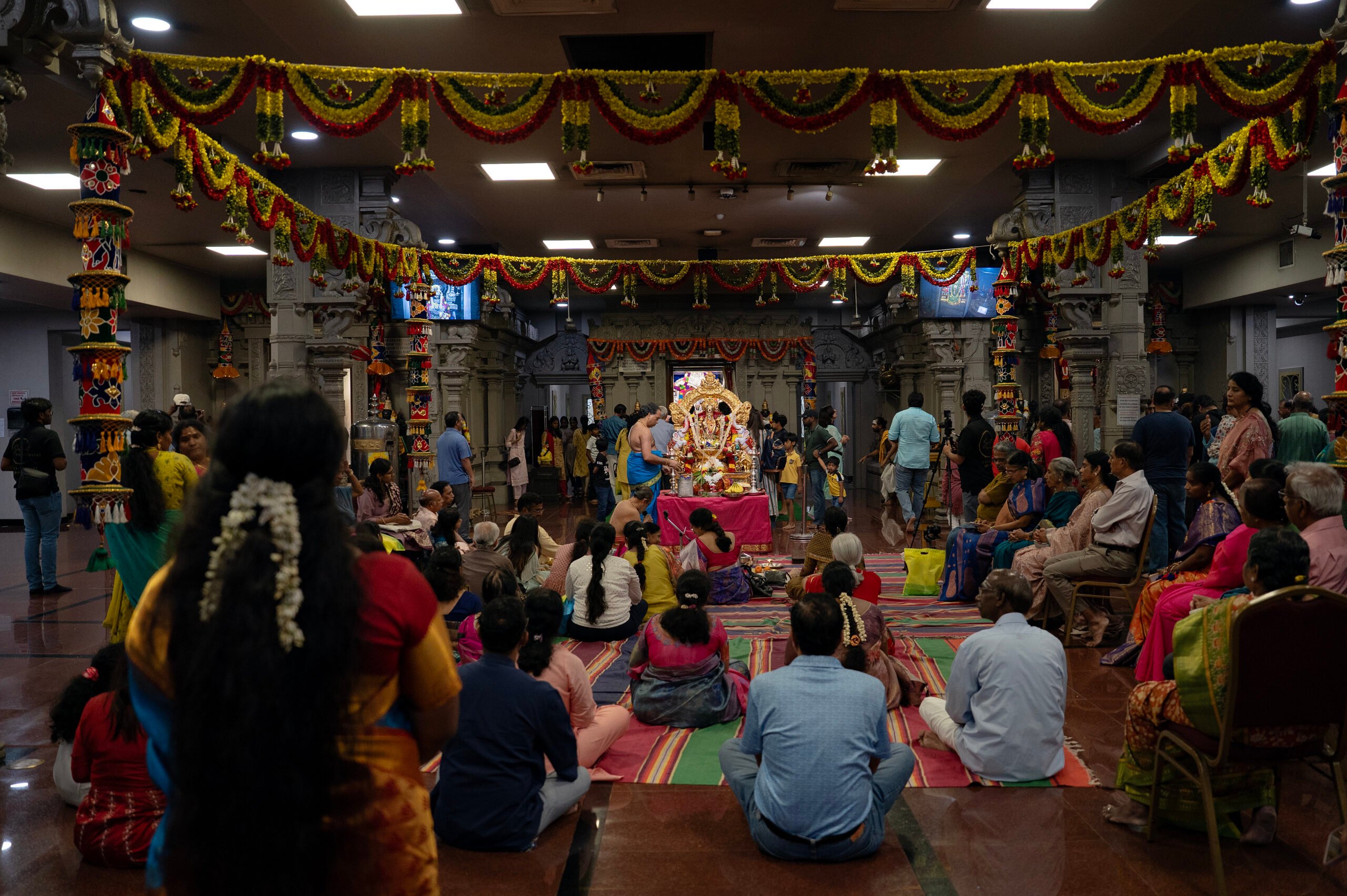 Here, women far from their families in India find sisterhood. Dancers and musicians from the mother country perform for their compatriots. Devotees stop by at all hours to meditate. And Indian-American kids learn their parents’ Tamil language.