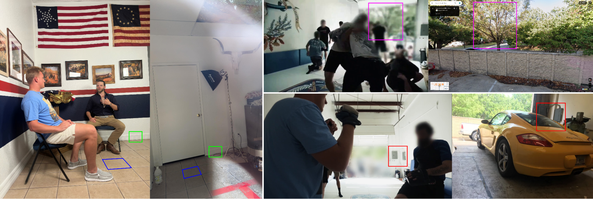 The address on the April 2025 permit corresponds to a small suite in a commercial building complex. According to analysis of publicly available documents, images, videos, and an in-person visit, the Observer has identified the location as a private gym used by the Lone Star Active Club, part of a network identified by the SPLC of white nationalist fight clubs controlled by Patriot Front, and as the location for an August 2025 interview a YouTube influencer conducted with Rousseau.The molding and tiles shown in a picture posted to X by an influencer who interviewed Rousseau and trained at a gym also match those in a picture taken by the Observer. The Lone Star Active Club has posted a video on Telegram showing a slightly blurred tree outside the garage door that matches a tree in the same location as confirmed by Google Street View and an Observer in-person visit. An electrical box configuration shown in a Patriot Front video also matches a photo from a business that previously occupied that address.