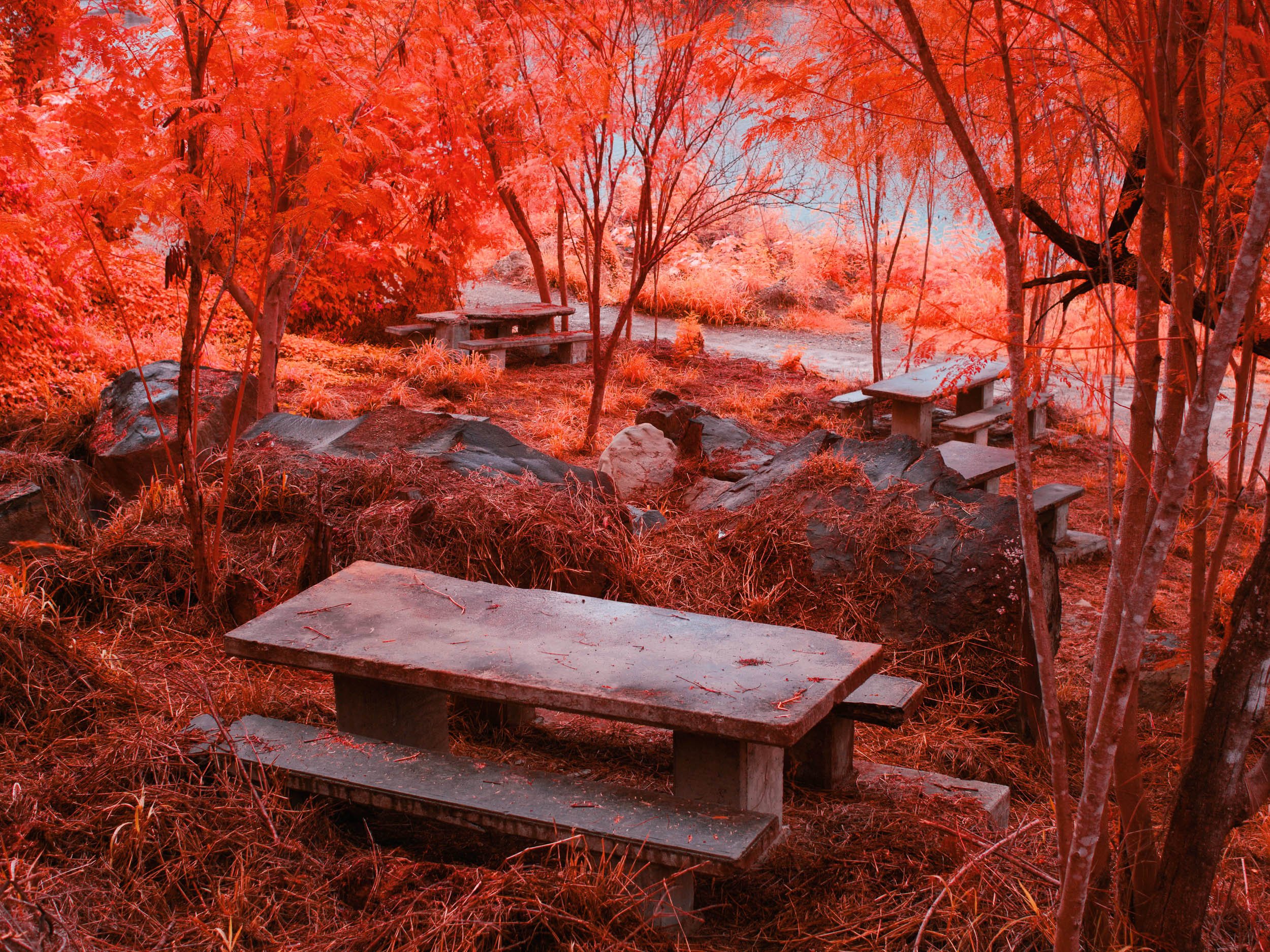 Unfortunately, Kodak discontinued Aerochrome film stocks in 2009—but modern digital cameras can be converted to record images in the same way. The spectrum of light visible to the human eye is roughly 400 to 700 nanometers in wavelength; however, a converted modern digital camera can see wavelengths in the ultraviolet and infrared spectrums, below and above the visible range respectively. This conversion is achieved by removing a filter that normally sits on top of the sensor in a digital camera. By removing it, the sensor sees well beyond what the human eye can see.