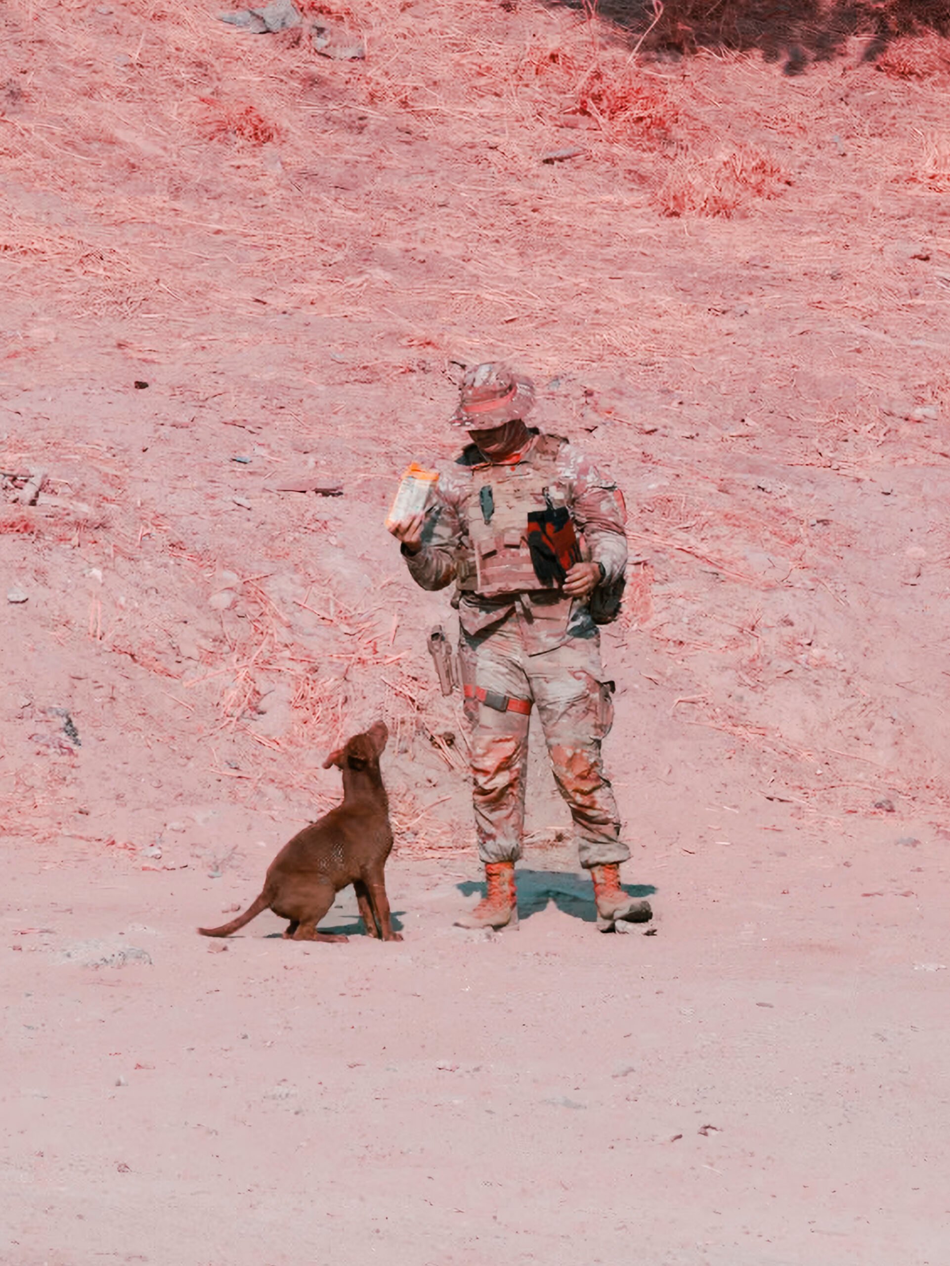 Using this specialized infrared-sensitive film in their reconnaissance missions, American troops were able to spot enemy positions, which did not reflect the same wavelength as living foliage and appeared as brown spots in a sea of pink and red.