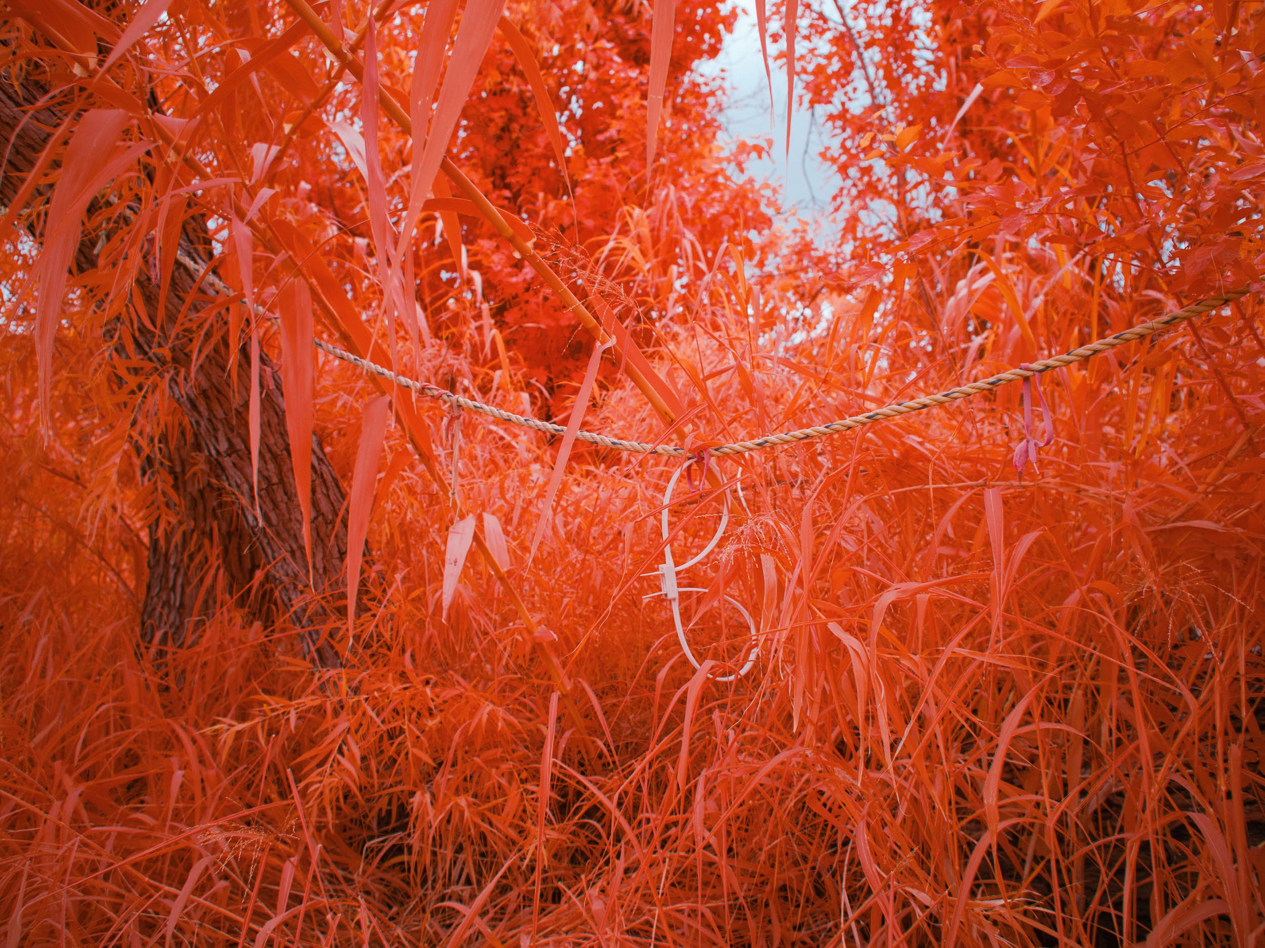 Different filters can then be used to isolate specific ranges of light. The Aerochrome look is recreated using a converted camera and an IR Chrome filter made by Korali Vision, which records only visible light and light at the lower end of the infrared spectrum.
